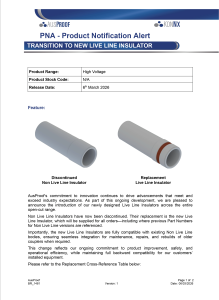 AusProof’s Product Notification Alert PDF of our Transition to New Live Line Insulator.